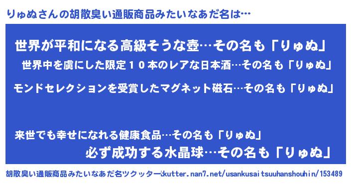 | ヘコむあだ名 | 『酢こんぶ』『りゅにー』『りゅ太郎』 |