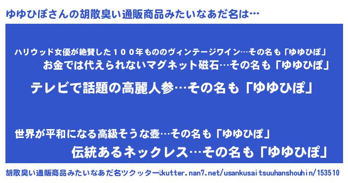 | 欧米人風あだ名 | 『ケンブリッジゆゆひぽ』 |