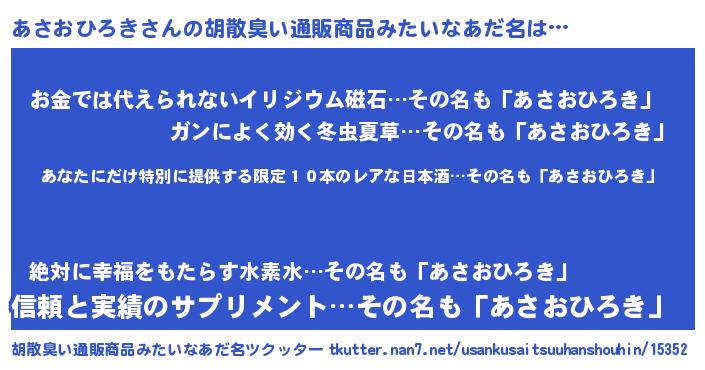 | ヘコむあだ名 | 『あさっ子』『あさおひろき(震え声)』 |