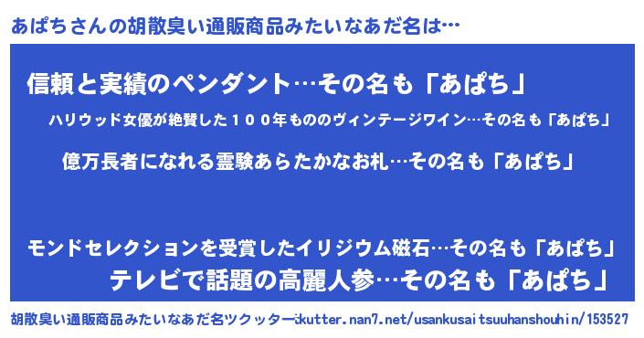 | 意味不明あだ名 | 『ペロリンあぱち』『自称あぱち』 |