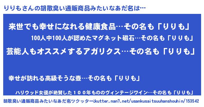 りりもさんの胡散臭い通販商品みたいなあだ名をツクッター!