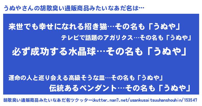 | 意味不明あだ名 | 『ペロリンうぬや』『永久保存うぬや』 |