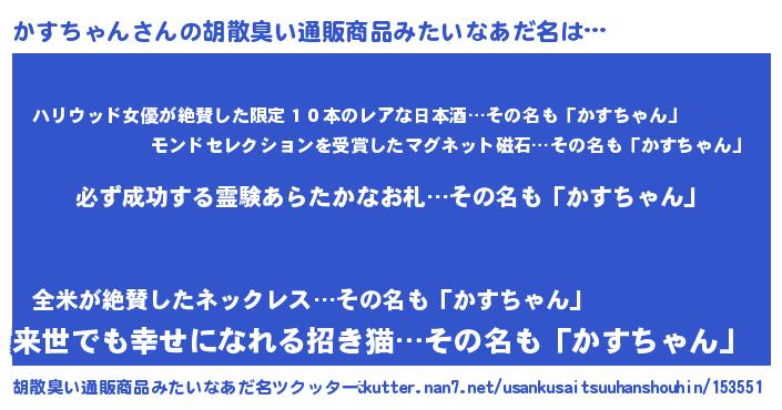 | 男性向けラノベタイトル風あだ名 | 『かすちゃんの憂鬱』 |
