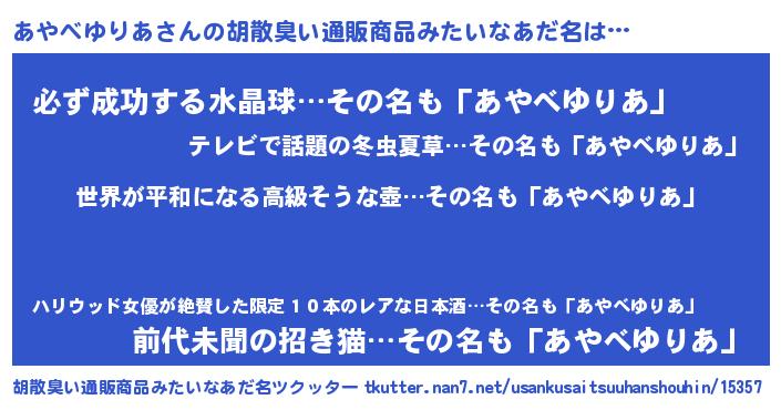 | 意味不明あだ名 | 『あやべゆりあフォーエバー』 |