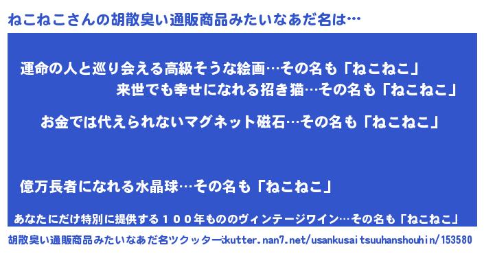 | 2回繰り返すあだ名 | 『ぶるんぶるん』『ねねここ』 |