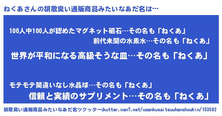 | 意味不明あだ名 | 『もやし科ねくあ属』『永久保存ねくあ』 |