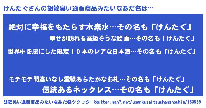| 意味不明あだ名 | 『住所不定無職けんたぐ(39歳)』 |