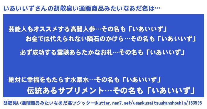 | 男性向けラノベタイトル風あだ名 | 『いあいいずの憂鬱』 |
