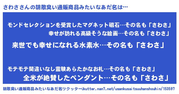 | 意味不明あだ名 | 『永久保存さわさ』『さわさフォーエバー』 |