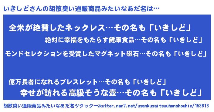 | ヒーロー風カッコイイあだ名 | 『慈愛の使者いきしど』『天弓騎士イキ』 |