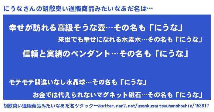 | 意味不明あだ名 | 『とにかく怪しいにうな』 |
