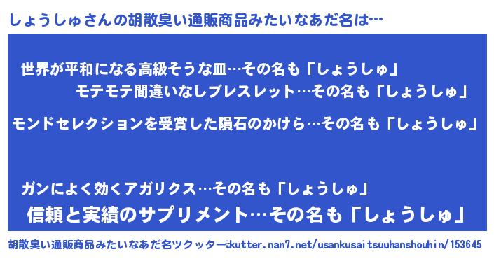 | 欧米人風あだ名 | 『ダニエルしょうしゅ』 |
