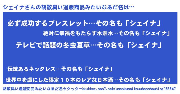 | ヘコむあだ名 | 『シェっふぃ~』『シェイナ(小並感)』 |