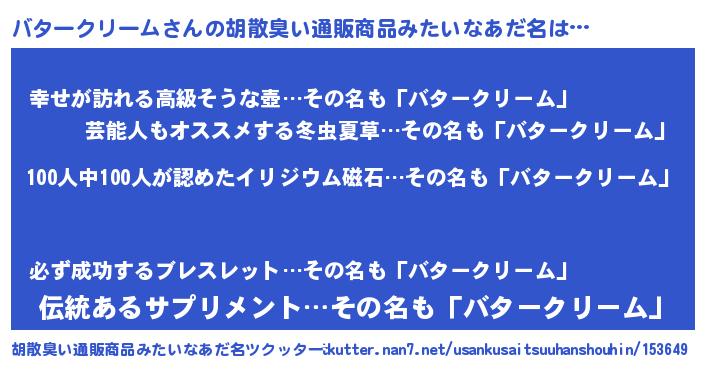 | ヒーロー風カッコイイあだ名 | 『正義の使者バタークリーム』 |