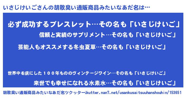 | 意味不明あだ名 | 『自称いさじけいご』 |