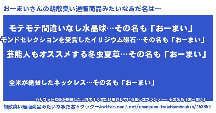 | 意味不明あだ名 | 『自称おーまい』『ペロリンおーまい』 |