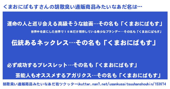 | 意味不明あだ名 | 『とにかく怪しいくまおにばもす』 |