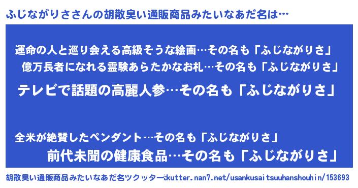 | 欧米人風あだ名 | 『ふじながりさ・ステッグマイヤー』 |
