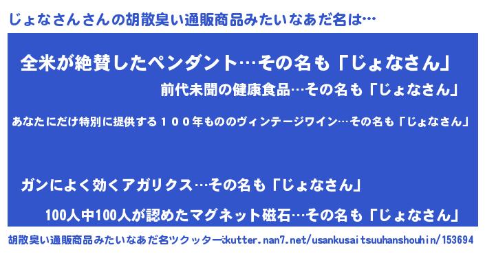 | ヘコむあだ名 | 『じょを』『じょなさん(遠い目)』 |