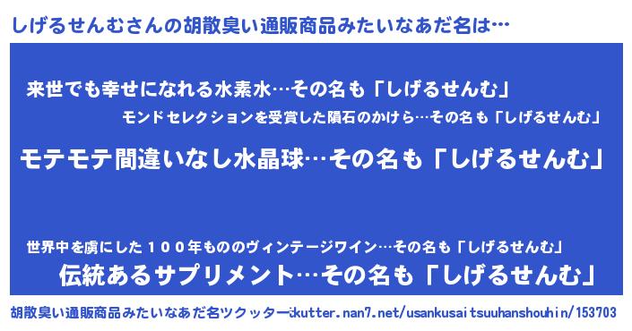 | ヘコむあだ名 | 『しげにゅー』『しげるせんむ(遠い目)』 |