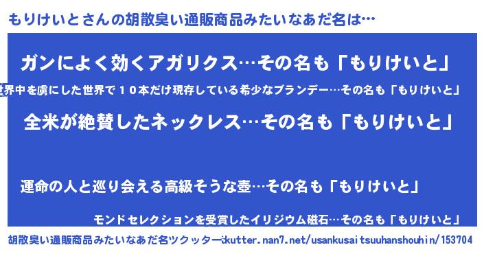 | 意味不明あだ名 | 『とにかく怪しいもりけいと』 |