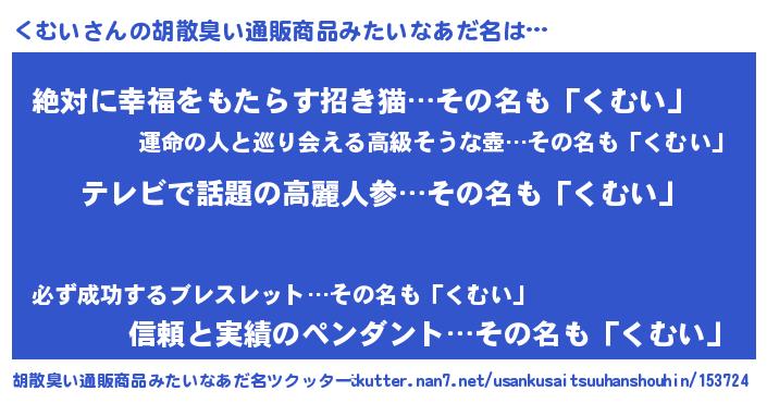 | 意味不明あだ名 | 『自称くむい』『永久保存くむい』 |
