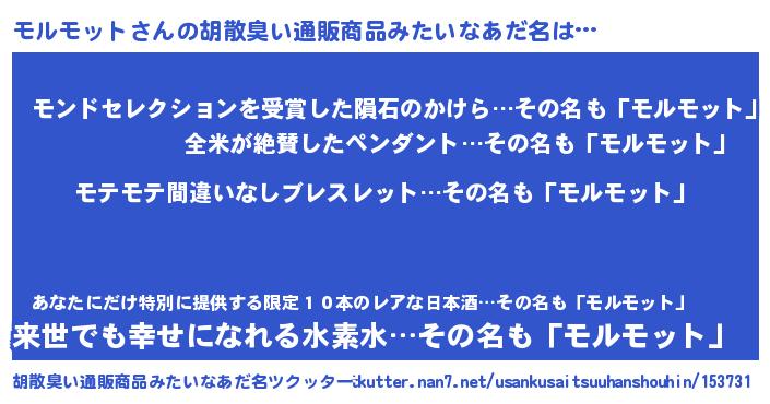 | ヒーロー風カッコイイあだ名 | 『スーパーモルモット』『ネオモルモット』 |
