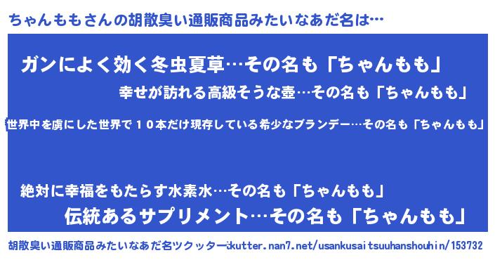 | 意味不明あだ名 | 『住所不定無職ちゃんもも(93歳)』 |