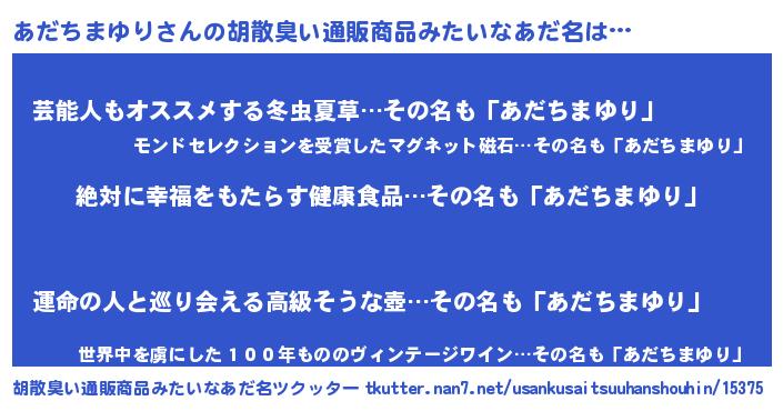 | 恥ずかしいあだ名 | 『あだちん』『アダチマユリデラックス』 |