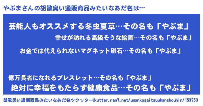 | 意味不明あだ名 | 『眠気覚ましガムやぶま味』『自称やぶま』 |