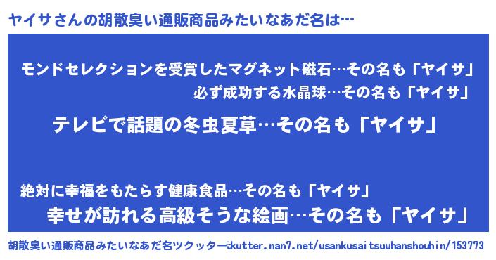 | ポケモン風あだ名 | 『ヤイセウス』『ヤイゴンZ』 |