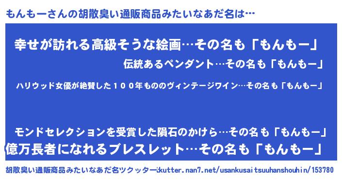 もんもーさんの胡散臭い通販商品みたいなあだ名をツクッター!