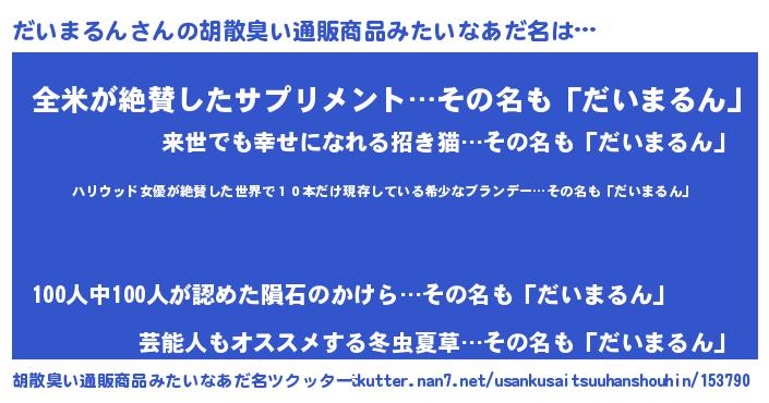 | 意味不明あだ名 | 『住所不定無職だいまるん(89歳)』 |