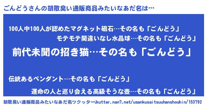 | ヒーロー風カッコイイあだ名 | 『ネオゴンドウ』『正義の使者ごんどう』 |