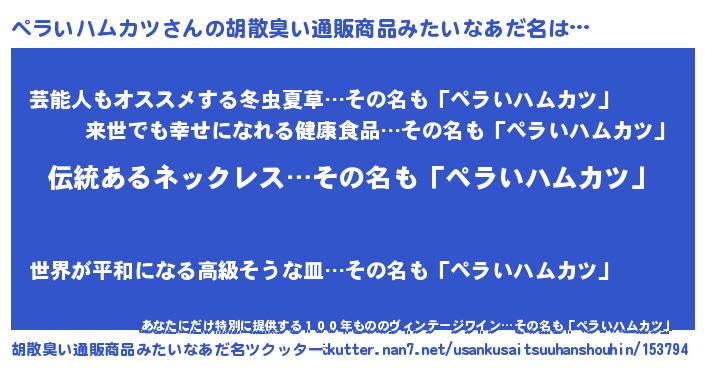 | 欧米人風あだ名 | 『トリンドルペラいハムカツ』 |