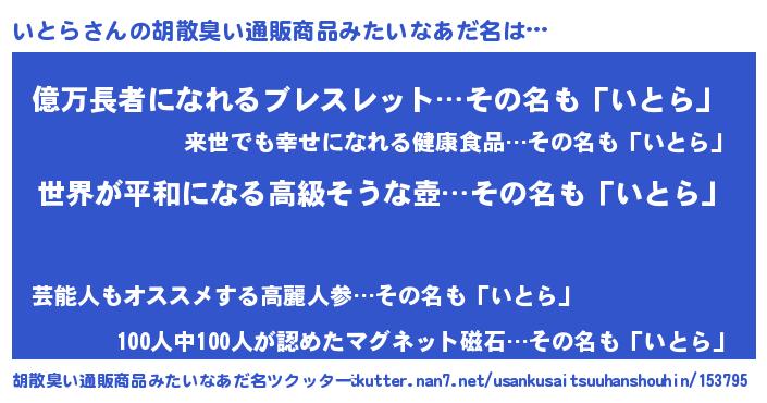 | 意味不明あだ名 | 『いとらフォーエバー』『ペロリンいとら』 |