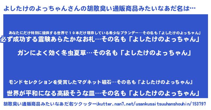 | ポケモン風あだ名 | 『ヨシセウス』『ヨシゴンZ』 |