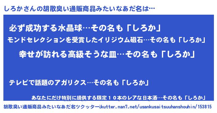 | 意味不明あだ名 | 『しろかフォーエバー』『ペロリンしろか』 |