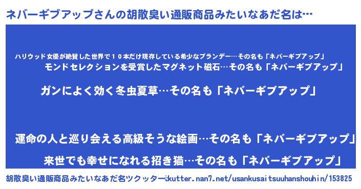 | 男性向けラノベタイトル風あだ名 | 『ネバーギブアップスレイヤー』 |