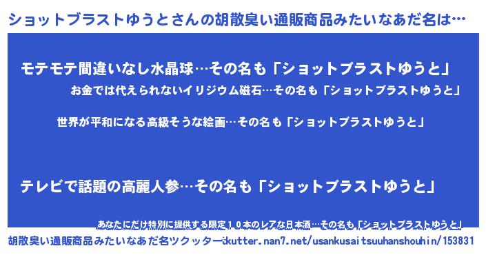 | 意味不明あだ名 | 『ショットブラストゆうとフォーエバー』 |