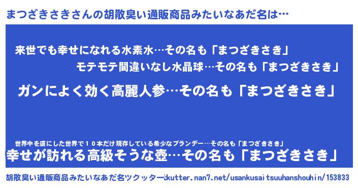 | 意味不明あだ名 | 『自称まつざきさき』 |