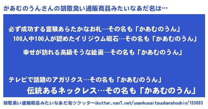| 意味不明あだ名 | 『かあむのうんフォーエバー』 |