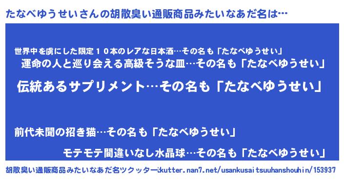 | 意味不明あだ名 | 『とにかく怪しいたなべゆうせい』 |