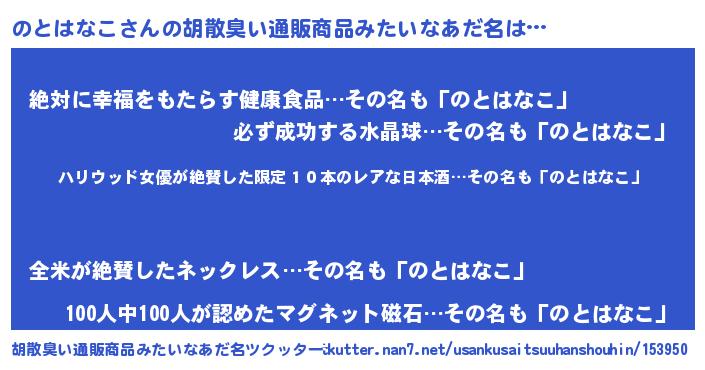 | ヘコむあだ名 | 『のとはなこ(笑)』『のとにゅー』 |