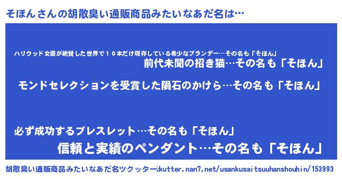 | ヘコむあだ名 | 『そほっちょ』『そほん(苦笑)』 |