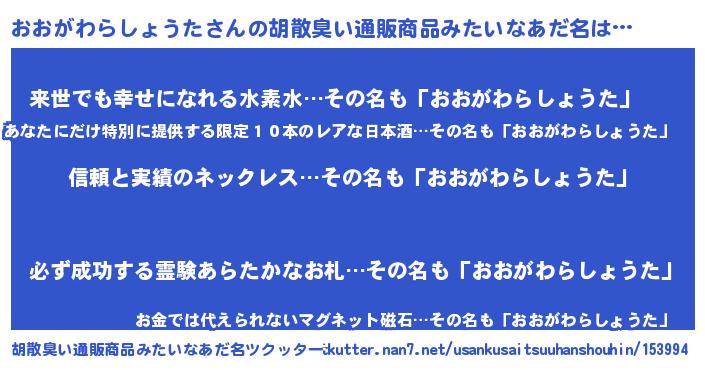 | 意味不明あだ名 | 『とにかく怪しいおおがわらしょうた』 |