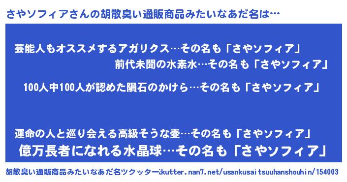| 欧米人風あだ名 | 『さやソフィア・ステッグマイヤー』 |