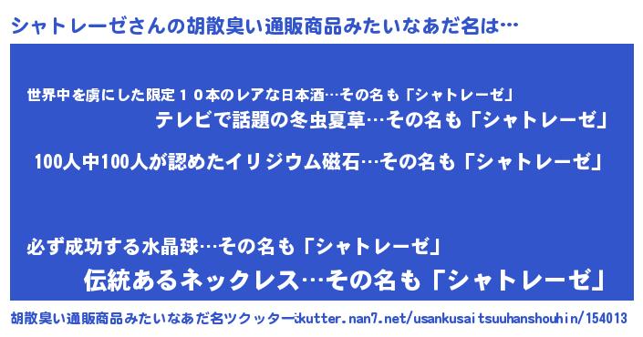 | ヘコむあだ名 | 『シャっ子』『シャにゅー』 |
