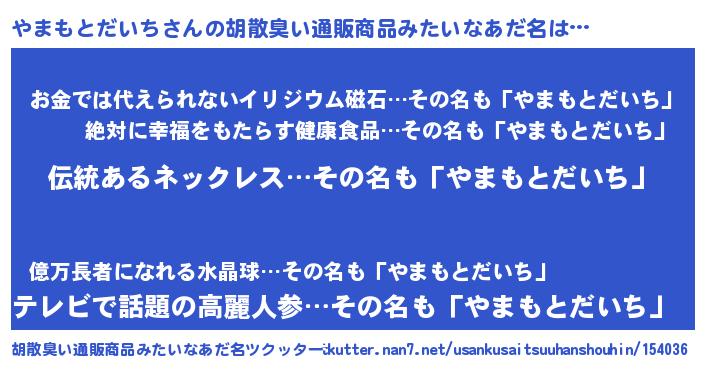 | ヘコむあだ名 | 『やまっ子』『やまもとだいち(遠い目)』 |