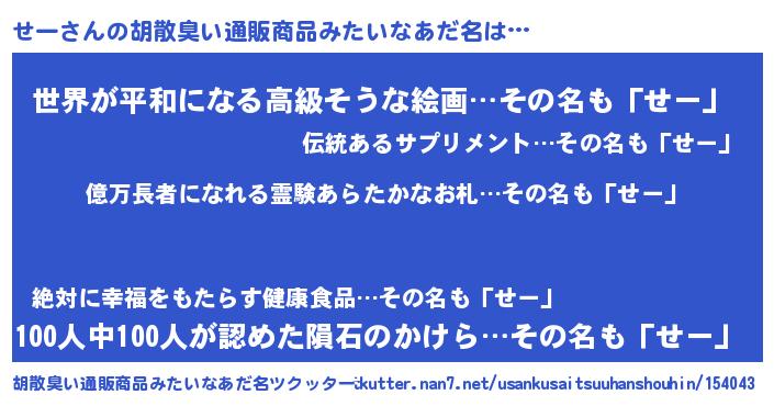 | ヒーロー風カッコイイあだ名 | 『スーパーセー』『ウルトラせーマン』 |